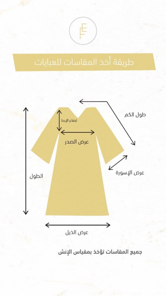 تمتااز العباءة بقصة صدر مدروسة مزينة بالتطريز الذهبي على كامل العباءة من الامام و الخلف و الأكمام ليضفي للتصميم الفخامة المرجوة